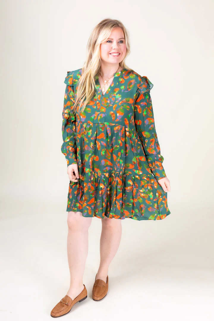 Experience effortless elegance with The Ivy Crepe Dress. This light and airy design features an eye-catching print with ruffle detailing and notched neckline for a flattering finish. The buttoned cuffs and shapeless silhouette make this an effortlessly stylish choice for any occasion.